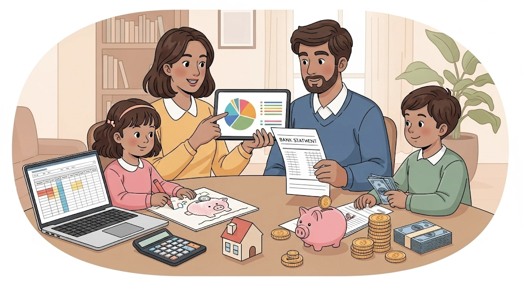 Foque nos aspectos positivos como conquista de metas e sonhos familiares. Use linguagem adequada à idade e transforme o controle financeiro em um jogo onde todos colaboram para alcançar objetivos comuns. Evite discussões sobre dinheiro na frente das crianças quando houver tensão ou preocupação.